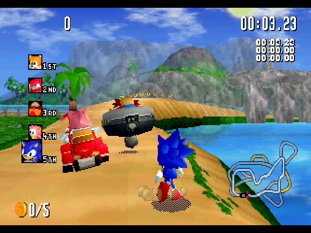Everybody's Supersonic Racing! Knuckles, Tails, Amy and Dr. Robotnik join Sonic in his speediest outing yet. Containing 5 graphically stunning tracks with many short-cuts and secrets. Sonic R will have you coming back for more. Features Grand Prix, 4 Time Attack modes and split-screen 2 player game. R U Ready?!?