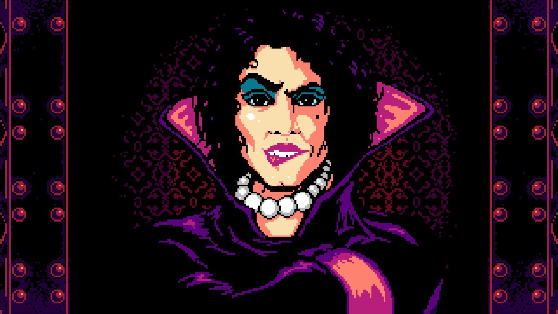I WOULD LIKE, IF I MAY, TO TAKE YOU ON A STRANGE JOURNEY Experience the strange journey of Brad and Janet like never before in this wild and wacky retro platform game adaptation of Richard O'Brien's legendary rock'n'roll musical. IT'S JUST A JUMP TO THE LEFT Run and jump through Frank-N-Furter's mansion of madness with authentic classic sidescrolling platform gameplay. MADNESS TAKES ITS TOLL Take on the mansion's tricks and traps in challenging classic platforming action, and with infinite retries, you'll never see a "game over" screen... good for relieving your tension, but it may drive you insane! LET ME PLAY YOU A SOUND Dance along with 8-bit chiptune renditions of Rocky Horror's legendary songs.