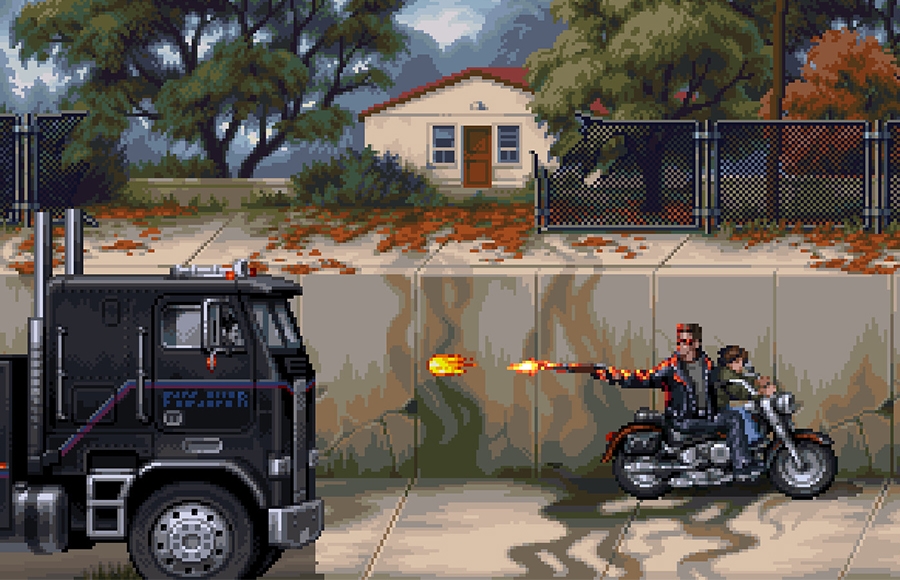 Experience the thrill of T2 with arcade action & pixel-perfect graphics! About The Game: Experience the events of ‘Terminator 2: Judgment Day’ brought to life through glorious pixel artwork and action-packed arcade gameplay! Play as Sarah Connor and the T-800 through a variety of thrilling missions as they take on the T-1000 and try to put a stop to Skynet’s plans before the human race is annihilated. Lead the Resistance as John Connor in the future, fighting on the front lines as mankind’s only hope in the War Against the Machines. In this unique story blending iconic scenes from ‘Terminator 2: Judgment Day’ with original scenarios and multiple endings, humanity’s fate is yours to decide. KEY FEATURES Step into a classic arcade experience that pays homage to the Terminator universe with authentic arcade gameplay, music and visuals built from the ground up. Relive iconic moments and forge new paths as Sarah, John and the T-800 in a narrative featuring a mix of classic Terminator 2: Judgment Day scenes and untold Terminator stories. Shoot, sneak and escape the T-1000’s blades in a wide array of levels, and lead the Resistance as John Connor in critical Future War missions. Battle against the full force of Cyberdyne and Skynet’s arsenal, with multiple enemy types and adrenaline-pumping boss fights to take on. See the world of Terminator 2: Judgment Day like never before with detailed 2D sprite artwork of your favourite characters and scenes. Enjoy a cinematic soundtrack featuring recrafted music from the legendary Terminator 2: Judgment Day score and all-new compositions. Aim for the highest rank in each level to reign supreme on your high score table and achieve arcade immortality. Mix things up with multiple different game modes to choose from: Story Mode, Arcade Mode, Infinite Mode, Boss Rush, Mother of the Future and Level Training!