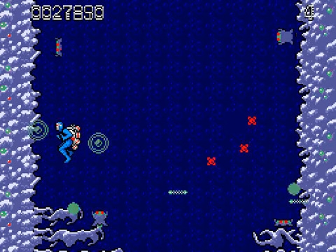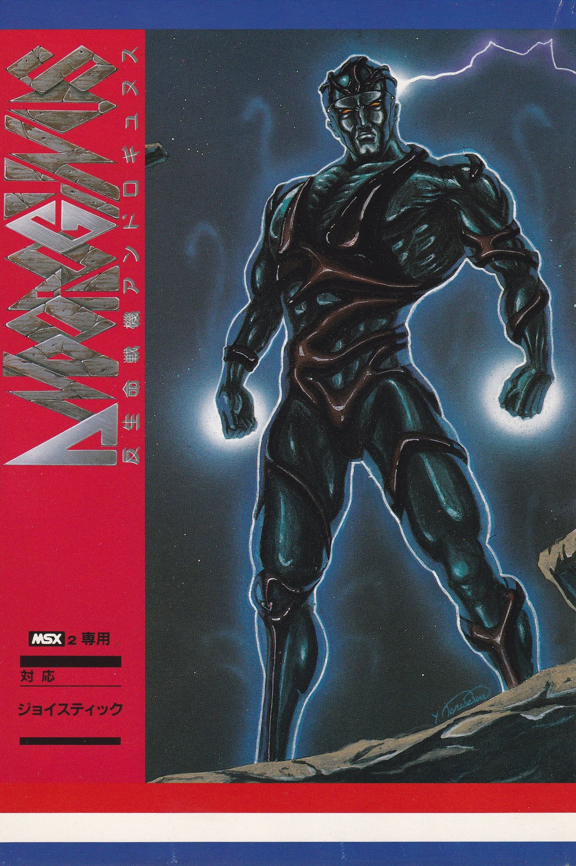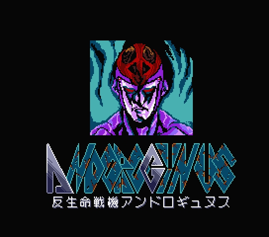 In our universe matter and anti-matter co-exist with each other. However, prevalence of anti-matter may create chaos and eventually disrupt the normal flow of things. In a corner of a universe, a concentration of anti-matter led to the creation of an entire star, breeding forms of life threatening to destroy the world. Human beings, in an effort to save the universe, created the powerful Andorogynus - a life form capable of being male and female at once - and sent it on a mission to destroy the creation of anti-matter. Andorogynus (sic) is a top-down shoot-em-up. The player controls the titular hero(ine), shooting at constantly attacking enemies. Unlike in most games of the type, the screen scrolls down rather than up. The protagonist is equipped with a default single shot and has protective orbs revolving around that damage nearby enemies. The weapon can be enhanced (rapid fire, three-way fire, etc.) by collecting randomly descending power-ups. The player controls the male incarnation of the protagonist initially, but later switches to the female one.