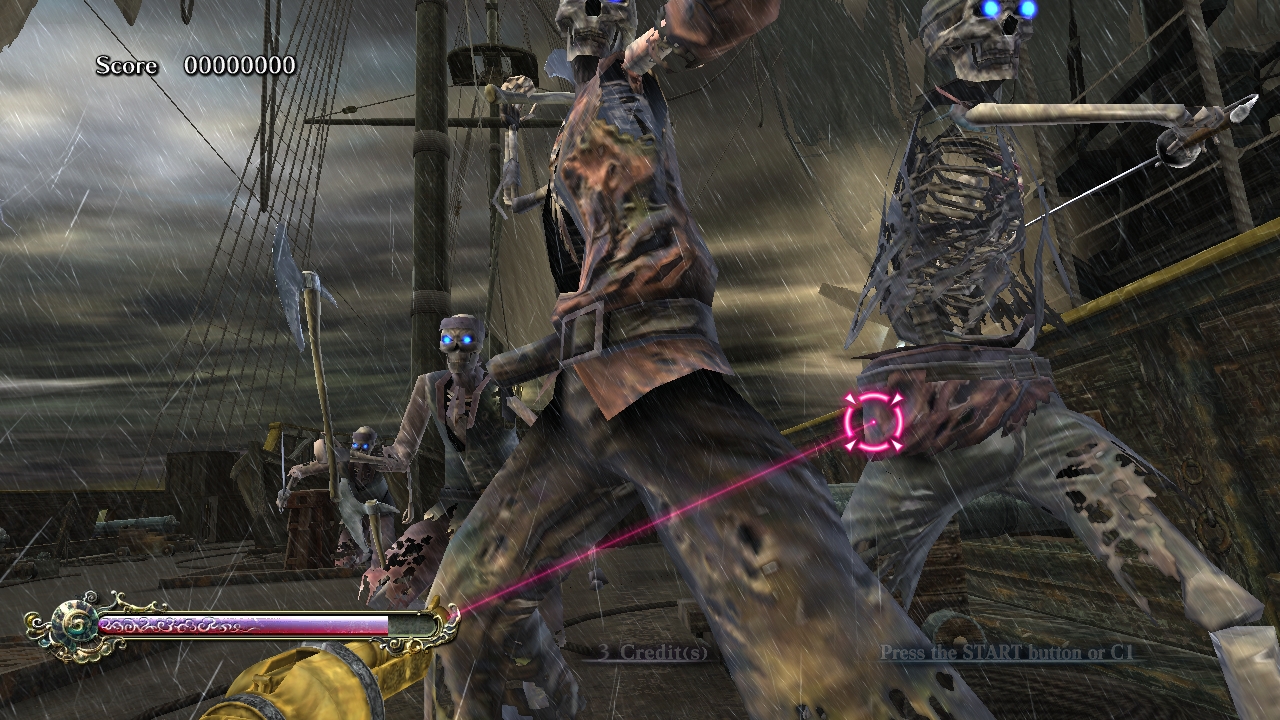 Deadstorm Pirates Special Edition arcade machine takes the swashbuckling arcade favorite, Deadstorm Pirates, adding extra content and puts it in a brand new 2 player closed booth cabinet. The Special Edition cabinet now features a large lit up skull on the front of the cab, and the game adds two brand new stages as well as unlocking the bonus stage found in the original game for all to play. With seven stages to choose from and a brand new ending, players will be playing Deadstorm Pirates Special Edition over and over again. Play together or ride solo, as you battle waves and monsters, feeling the recoil as you fire your canon. This game has proven its popularity with players over quite some time. With its bright cabinet and exciting gameply, Deadstorm Pirates draws in players of all ages and skill levels from all across the floor.