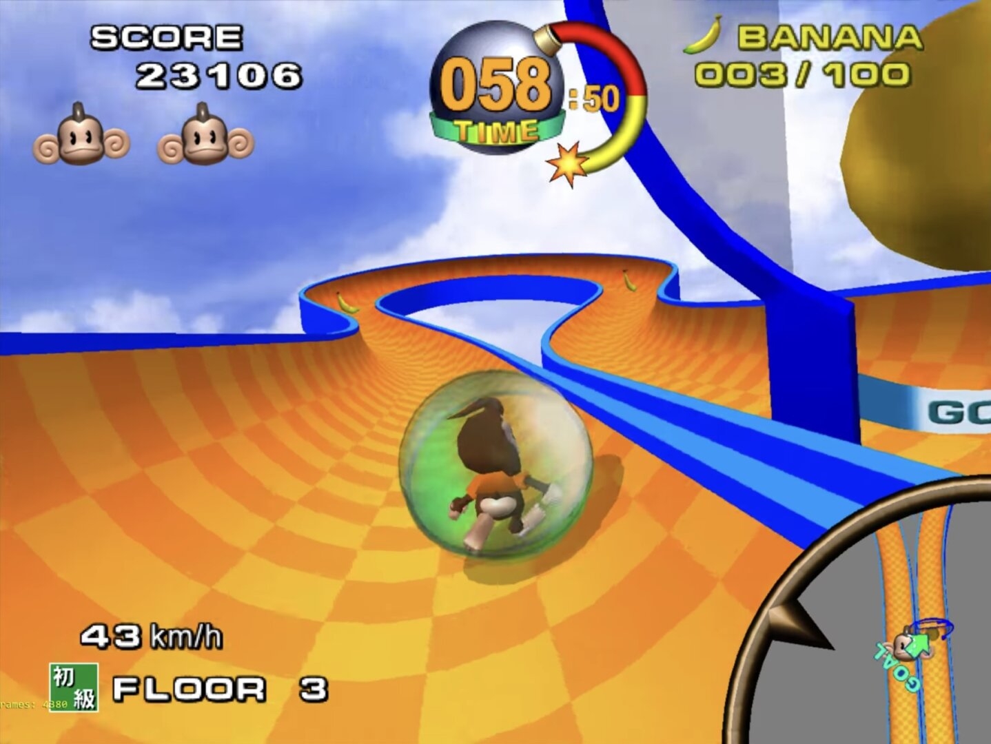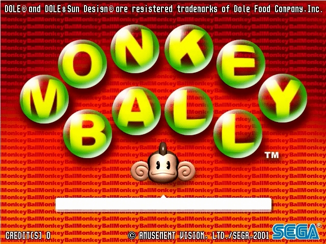 Monkey Ball (モンキーボール) is a Platformer 3D/Puzzle video game published by SEGA released on 2001 for the Naomi Arcade Platform. Monkey Ball is a series of arcade platform video games initially developed by Amusement Vision and published by Sega. The series debuted in 2001 with the arcade game Monkey Ball, which was ported to GameCube as Super Monkey Ball later that year. Several sequels and ports have been released.