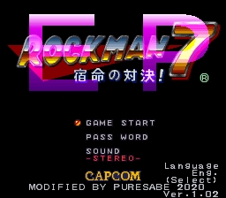 Rockman 7 EP is a complete romhack of Rockman 7 (NOT Mega Man 7). Expect all new (and some familiar) level designs, mid-boss battles, auto-scrolling sections, shop items, enemy and Robot Master attack patterns, weapon behaviors, and a lot more. It also enables in-game switching of weapons and adaptor.
