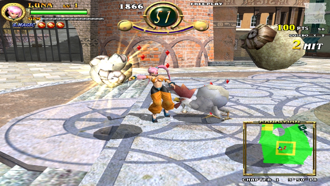Slashout (スラッシュアウト) is a Beat 'em up/Hack and Slash video game published by Sega Enterprises and developed by Amusement Vision released on 2000 for the Naomi Arcade Platform. Slashout is the third installment to the Spikeout series, released for Sega NAOMI hardware in 2000. Unlike other games in the series, Slashout has a completely different setting, based in a medieval fantasy world with different characters - gameplay remains similar, however.