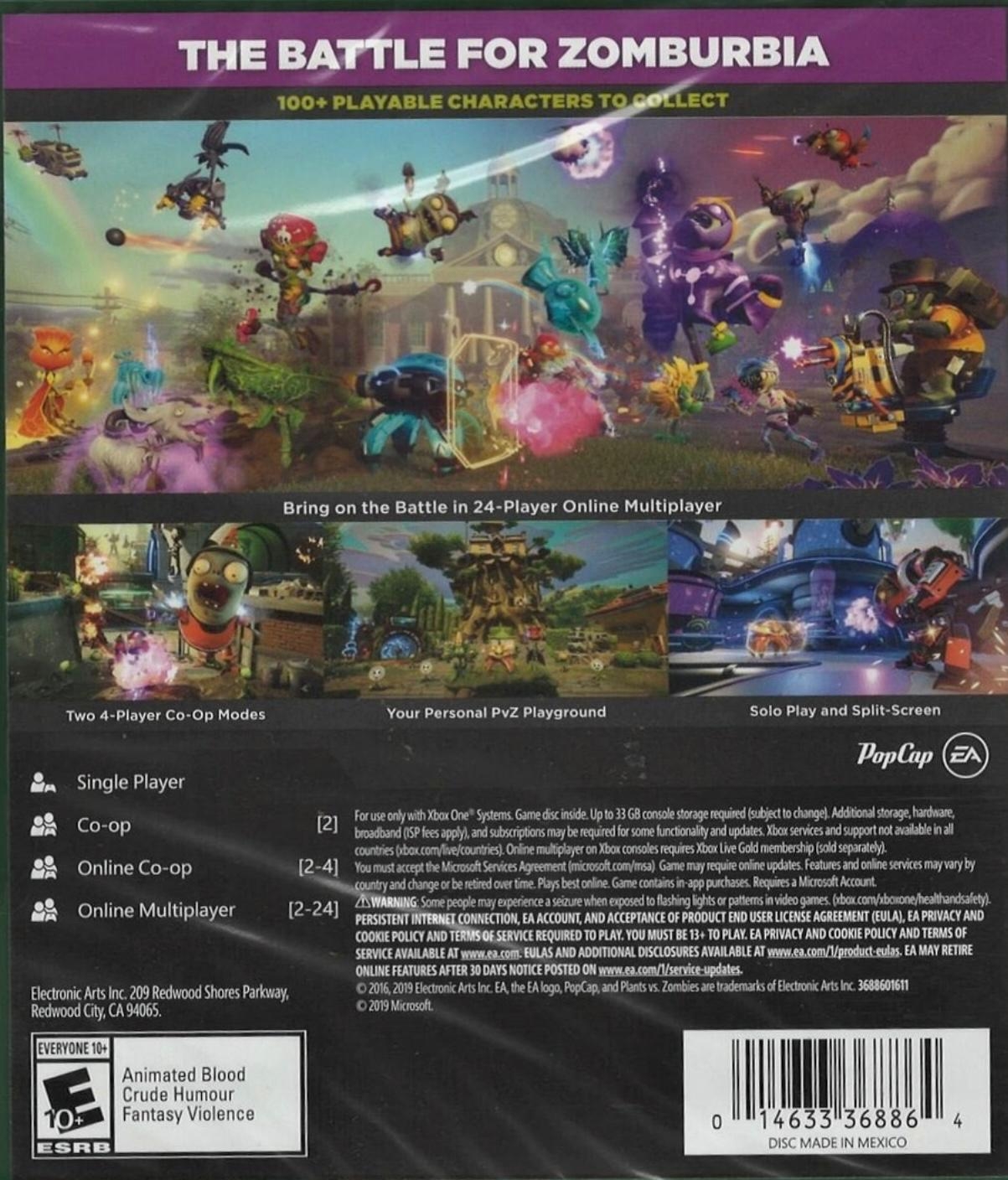The battle for suburbia grows to crazy new heights in Plants vs. Zombies™ Garden Warfare 2! In this hilarious, action-packed shooter, zombie leader Dr. Zomboss has strengthened his horde and rebuilt suburbia as a zombie utopia. But hope remains, because for the first time the plants are taking the offensive in an all-out attack to reclaim their turf. Play as both the plants and zombies in new 24 player multiplayer and 4-player co-op modes, or go at it solo or in split-screen against the AI across all game modes. Garden Warfare 2 also introduces the Backyard Battleground, your very own interactive hub where you and up to 3 friends can take on daily quests, challenges, and interact with your favorite PvZ characters.
