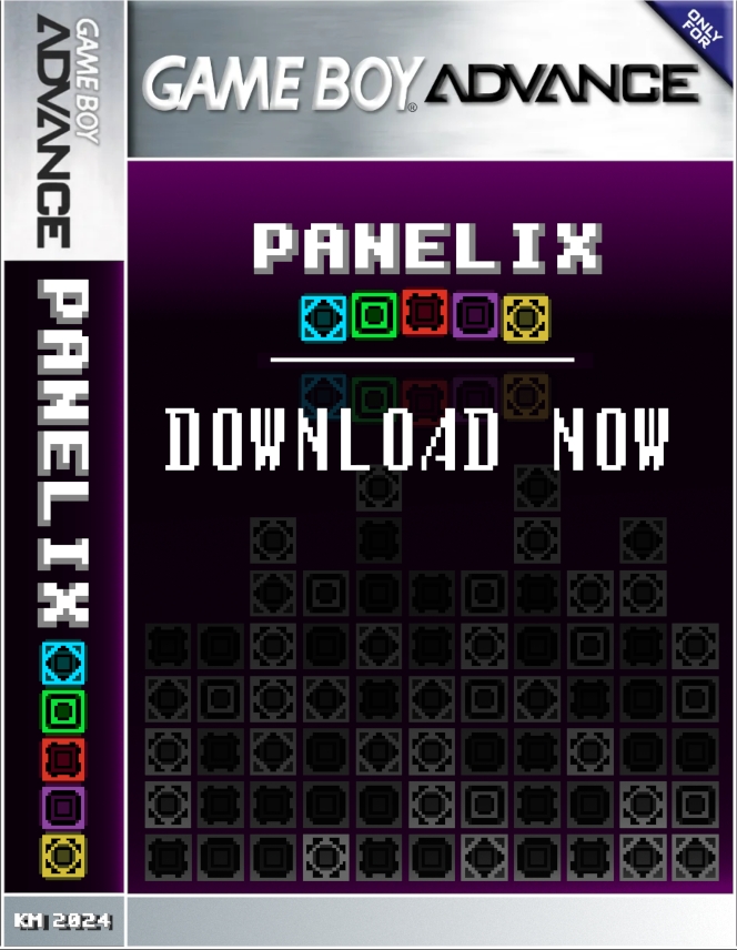 Panelix - a match 3 puzzle game for the GBA. Gameplay is inspired by the classic panel de pon (tetris attack), but with a twist. Blocks fall from the top of the screen. You can move blocks into existing combos to extend them. Higher combos score exponentially more points.