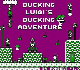 Ducking Luigi’s Ducking Adventure is a romhack of Super Mario Bros. 2 USA for NES. It follows Luigi’s story after the events of SMB2U. Luigis all across the multiverse have been kidnapped and it is up to Prime Luigi and friends to save them. Red Luigi, Waluigi and Louise will join Luigi in this ducking adventure. Good Luck! This hack features 18 original levels. All the levels are inspired by their vanilla counterparts, so sections may seem familiar. However, every level is much harder than vanilla. There are 3 warps. The first 2 are in their vanilla levels and take you to the same worlds and are optional. However, level 6-1 features a third warp that is required and takes you to world 7. All 18 levels contain 2 power up mushrooms and at least 1 one-up. Some levels contain multiple 1-up mushrooms. (YES it is possible to collect more than 1 per level) Each level features a unique color palette. All levels are complete-able with all characters. Oh yeah, also all characters behave exactly the same. They all behave like vanilla Luigi. Their differences are cosmetic only. You begin with 9 lives and 9 continues. –Tips— If you ever lose a key, you can re-spawn it in its original spot if you simply walk 2-3 screen away and come back. If a hawkmouth exit despawns, you can simply walk 2-3 screen away and come back and it will respawn and even open if you already grabbed the orb. If you see a cherry, get a cherry. Several sections are easier with a star power up and a few birdos and bosses can be star killed. All levels have 2 power-up mushrooms. (Highly recommended to collect them) Power-up mushrooms will always be between two identical palm tress OR in odd background structures. Ladder jumps ARE REQUIRED. To jump off a ladder hold right or left while on a ladder and press jump right as you let go to jump off. These characters can jump high and far. Take advantage. Picking up 1-up mushrooms under low floating platforms will behave strangely…