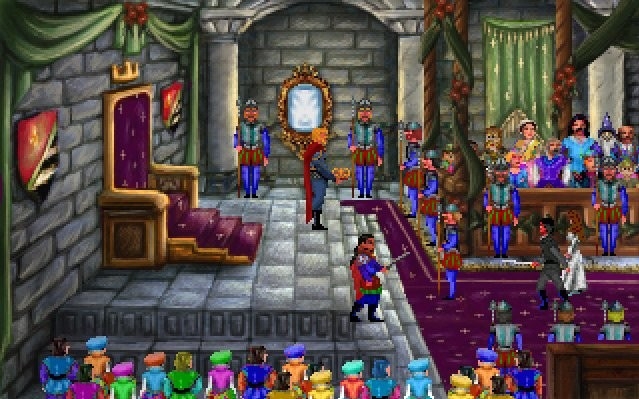 A fan-made VGA remake of Sierra's 1985 adventure sequel. King Graham must find a queen for Daventry after spotting a beautiful maiden trapped in a tower through his magic mirror. Journey through enchanted lands, solve puzzles, and gather three keys to unlock the tower in the realm of Kolyma. Battle an evil enchantress, navigate fairy tale perils, and prove your worth to win true love. This 2002 remake features updated graphics, full voice acting, a point-and-click interface, and expanded story elements while maintaining the spirit of the original quest.