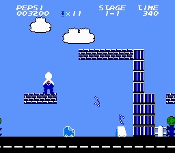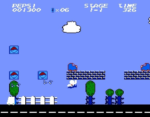 It’s Pepsiman on the NES with the SMB1 engine and a lot’s of Pepsi! Patch Notes: 1. 0: -first sprites -first color palletes -levels -text -Pepsiman physics -fireball physics 1. 1: -changed some titlescreen and ui sprites -changed street sprite -changed treesprite -changed $-blocks to Pepsi-blocks -changed pepsican(Pepsi-block) sprite -changed box sprite -changed fireball to pepsiball -changed castle and skullflag to pizzaflag -changed underground pipe color pallete 1. 1.1: -fixed Pepsiballcan (full sprite is now flashing) -changed vine to pole GFX link here: https://gamesdb.launchbox-app.com/games/details/427922-pepsi-man