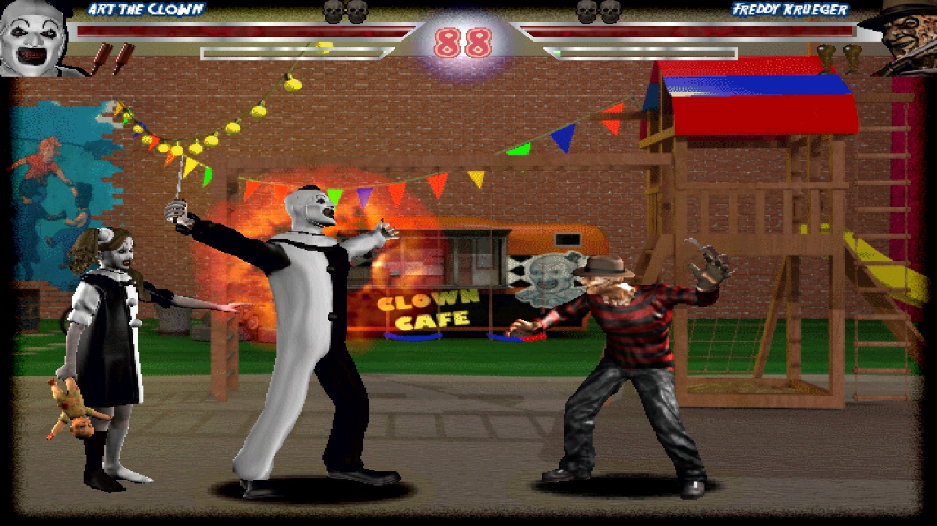 errordrome: Rise of the Boogeymen Extended Version is free fan made game, a tribute to the most popular horror movie icons of the 70’s, 80’s, 90’s to 00’s and for the first time all your favorite horror character are bound together in a unique fighting game. Decide who’s the most evil and badass boogeyman in fearsome battles. THE ULTIMATE HORROR MOVIE FIGHTING GAME JASON VOORHEES (CLASSIC AND UNDEAD) – FREDDY KRUEGER – LEATHERFACE – MICHEAL MYERS – ASHLEY WILLIAMS – TALL MAN – CHUCKY – GHOSTFACE – MATT CORDELL – CANDYMAN – HERBERT WEST – PUMPKINHEAD – PINHEAD - PENNYWISE ( 2017) - PENNYWISE ( 1990) - JEEPERS CREEPERS - ART THE CLOWN - PIG SAW https://trdmextendedversion.wixsite.com/trdmrotbexvs