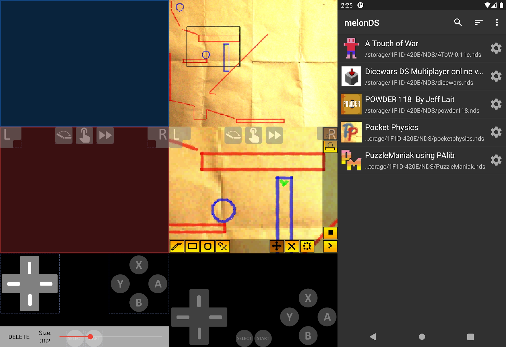 melonDS aims at providing fast and accurate Nintendo DS emulation. While it is still a work in progress, it has a pretty solid set of features: • Nearly complete core (CPU, video, audio, ...) • JIT recompiler for fast emulation • OpenGL renderer, 3D upscaling • RTC, microphone, lid close/open • Joystick support • Savestates • Various display position/sizing/rotation modes • (WIP) Wifi: local multiplayer, online connectivity • (WIP) DSi emulation • DLDI • (WIP) GBA slot add-ons • and more are planned!