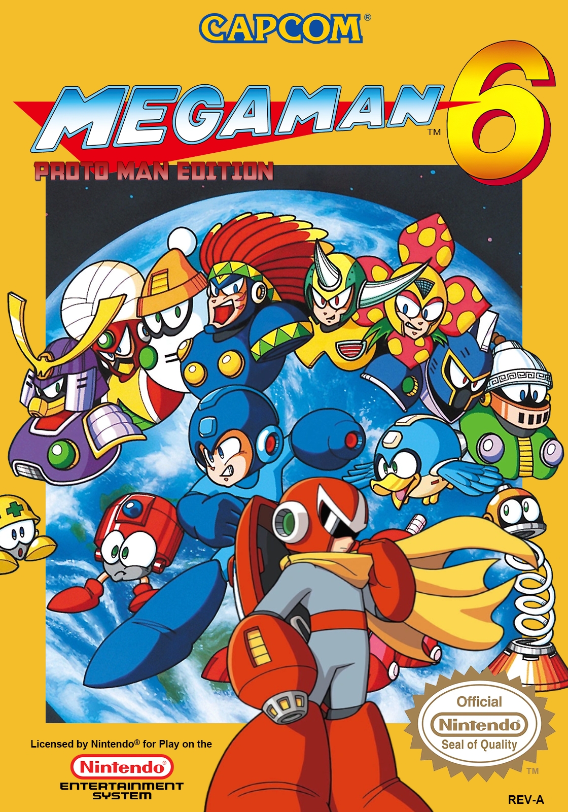 This is a hack of Mega Man 6 that replaces Mega Man with Proto Man. Currently the changes made are: All of Megaman’s Sprites are replaced with Protoman, including the Jet and Power Adaptors, and the 1up Helmet. Graphics of Credits, Title Screen, Stage Select, Password Screen, and Weapon Menu Screen. All Palettes that needed changing. What still needs to be done: Cut Scenes need Megaman to be changed to Protoman. A few various Tile Mappings need changing, which will require expanding the ROM (Protoman’s Cape needs more Tiles in some Frames and Tiles of a different Palette so it can be Yellow, + “MEGAMAN VI” Text in Weapon Menu when equipping a Suit / Armor needs this done so it can be “PROTOMAN VI, and a few other tiny adjustments”) Programming the Shield to actually be functional. Slight Player Character adjustments to remove the sticky control feeling he has in Mega Man 6. GFX link here: https://gamesdb.launchbox-app.com/games/details/417976-mega-man-6-proto-man-edition