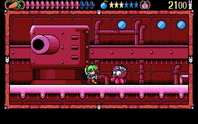 Usagi na Panic (うさぎなパニック) is a Action/Platformer 2D video game published by Nihon Softec and developed by Nihon Softec released on February 24th, 1995 for the PC-98. Usagi na Panic tells the story of two rabbit-eared adventurers: the spunky warrior Ramy and her magician companion Usami. They travel around and solve the troubles of the citizens they encounter during their journey. You play as Ramy, who has an oddly extensive move-set including a running stab, a fireball, and a bomb with rather dubious utility.