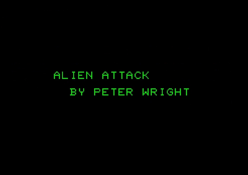 THE OBJECT OF THE GAME IS TO DESTROY THE ALIENS. THEY WILL APEAR AT THE BOTTOM. IF THEY ARE NOT DESTROYED THEY WILL, MOVE UP AND DESTROY YOU. TO FIRE AT THEM PRESS THE "SPACE KEY. YOUR SHOT MUST HIT DEAD CENTRE, IF IT DOES NOT IT WILL BOUNCE OFF. This game was written by Peter Wright and appeared as a listing in the January 1980 issue of Personal Computer World (UK).