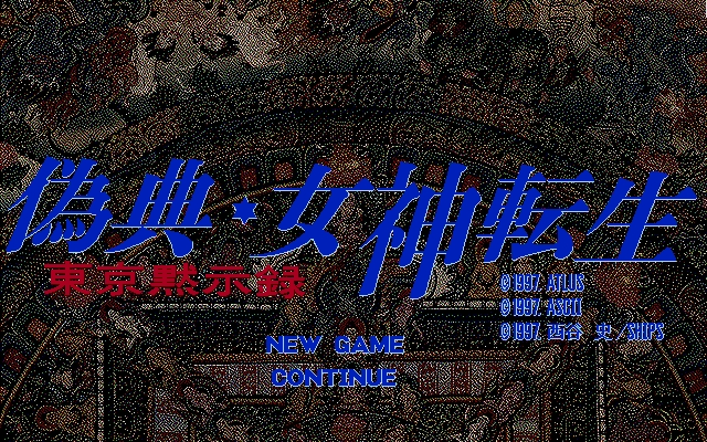 Giten Megami Tensei - Tokyo Revelation (偽典・女神転生 東京黙示録) is an Adult RPG video game published by ASCII Corporation and developed by Yū-Kikaku released on April 4th, 1997 for the PC-98. This game is generally more explicit than any other title in the Shin Megami Tensei series. There's a lot more nude sprites for the demons than usual and optional sex scenes. In 199X, Tokyo was destroyed by ICBMs, resulting in a nuclear holocaust. Some people with foresight had built underground shelters and survived the Great Cataclysm, while demons began to rampage on the ground. People in the underground shelters still need to defend against demon invasion, and thus an organization called Devil Busters have formed. Around 20 years passed, and a new generation has grown up in the shelters..."