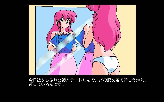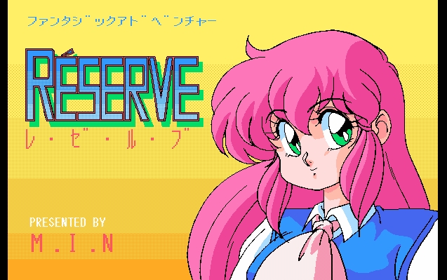 Réserve (予約する) is an Adult RPG video game published by M.I.N, and developed by M.I.N, released in 1990 for the PC-98. Our heroine, Mio, is preparing for a date with her boyfriend. On the way to her date, she ends up in a vortex and finds herself transported to a different world! You would think she'd be scared, but she's only bothered because it's going to make her late... A small elf appears and warns her about the monsters of this world. It turns out that they have a taste for humans... particularly human girls! Instead of eating them, though, they have sex with them. Mio has to navigate the world and fight monsters in order to go home, and make it to her date on time!