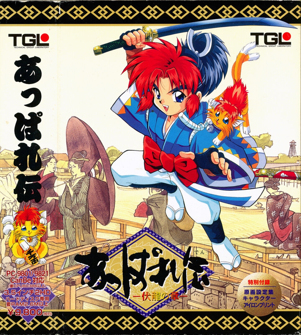 Appareden -The Sacrosanct Dragon- (あっぱれ伝 ー伏龍の章ー) is a RPG video game published by TGL and developed by TGL released on December 8th, 1995 for the PC-98. The rulers of Edo have heard about a powerful Dragon God who was sealed long time ago, and whose defeat made it possible to create the country of Japan. He wants to restore this great power for his own selfish purposes. The hero of the game is a young warrior named Gento, whose companion is a feline creature named Benimaru. One day Gento arrives at a northern village and is attacked by Edo soldiers. Determined to find out the reason for this hostility, Gento and Benimaru embark on a long journey across the whole Japan.