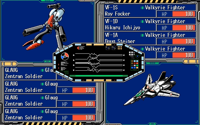 The Super Dimension Fortress Macross: Skull Leader Complete Pack (超時空要塞マクロス スカルリーダー) is a Strategy/Visual Novel video game published by Family Soft and developed by Family Soft released on July 7th, 1995 for the PC-98. The game covers the events in movie “Do You Remember Love?”, but it also takes some plot from the anime series. It also does have some plot elements/characters of its own. Strategy battles are fairly involved, since you can utilize a wide variety of units, strategies, formations, transformations and weapon types. Your goal is usually to destroy all the enemy units, get to a certain point or escort some unit as fast as possible. VN segments and strategy segments complement each other quite well, and the story itself has some original elements to it.
