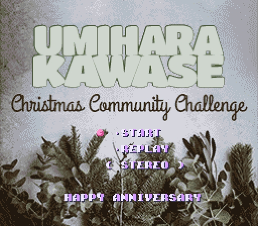 Umihara Kawase Christmas Community Challenge is a collaborative hack for Umihara Kawase made in 2019 to celebrate the 25th Anniversary of the original SNES game.