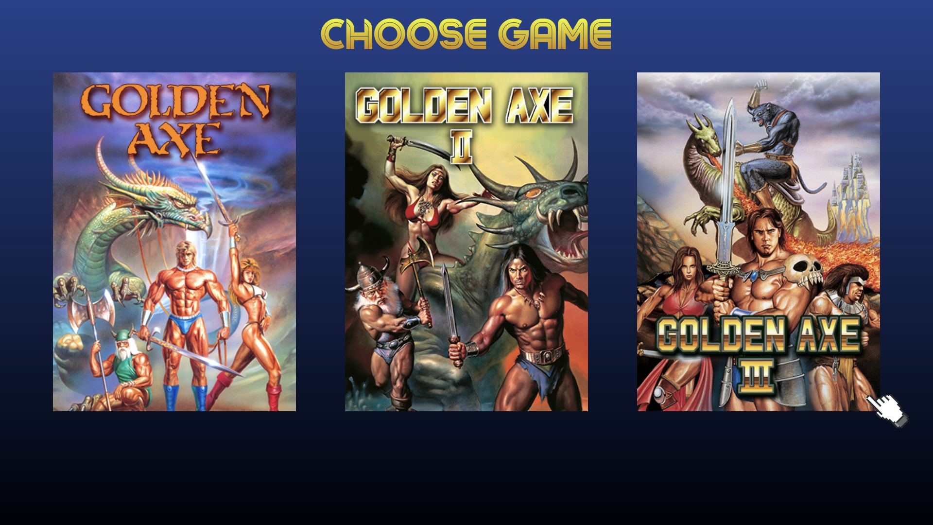 Golden Axe is a 1989 beat 'em up video game developed and published by Sega for arcades on the Sega System hardware. Players control one of three warriors who must free the fantasy land of Yuria from the tyrannical rule of Death Adder, who wields the titular Golden Axe. This an emulated version of the 1989 Sega Mega Drive game Golden Axe. It was published in 2017 by Sega for Android and iOS devices as part of their free-to-play Sega Forever series. This Version contains all 3 of the first games.