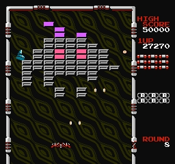 In this hack, the game’s graphics have been improved and the game design was revised with more modern play kept in mind. More sense is made out of the continue and level skip cheats, which were almost always used on every play, so now those features have been properly adapted into the main game. ADDED: -holding the B button greatly increases vaus’ move speed -new warp pill system CHANGED: -continue option available from the title menu after a game over (the cursor is moved to it automatically to prevent “new game” accidents) -starts with 6 lives (on new game and continue) -displays up to 9 lives on the HUD (originally only 6) -graphics NEW WARP PILL SYSTEM: -the warp pill no longer creates the warp gate automatically grabbing a warp pill sends it to the inventory -pressing SELECT spends a warp pill and opens a warp gate -entering the warp gates sends you 2 levels ahead instead of just skipping the current level -starts with 3 warp pills on a new game -the amount of warp pills is kept upon continuing -warp gate point bonus reduced from 10,000 to 5,000 -displays up to 6 warp pills on the HUD (new feature) -chances for warp pill drop slightly increased