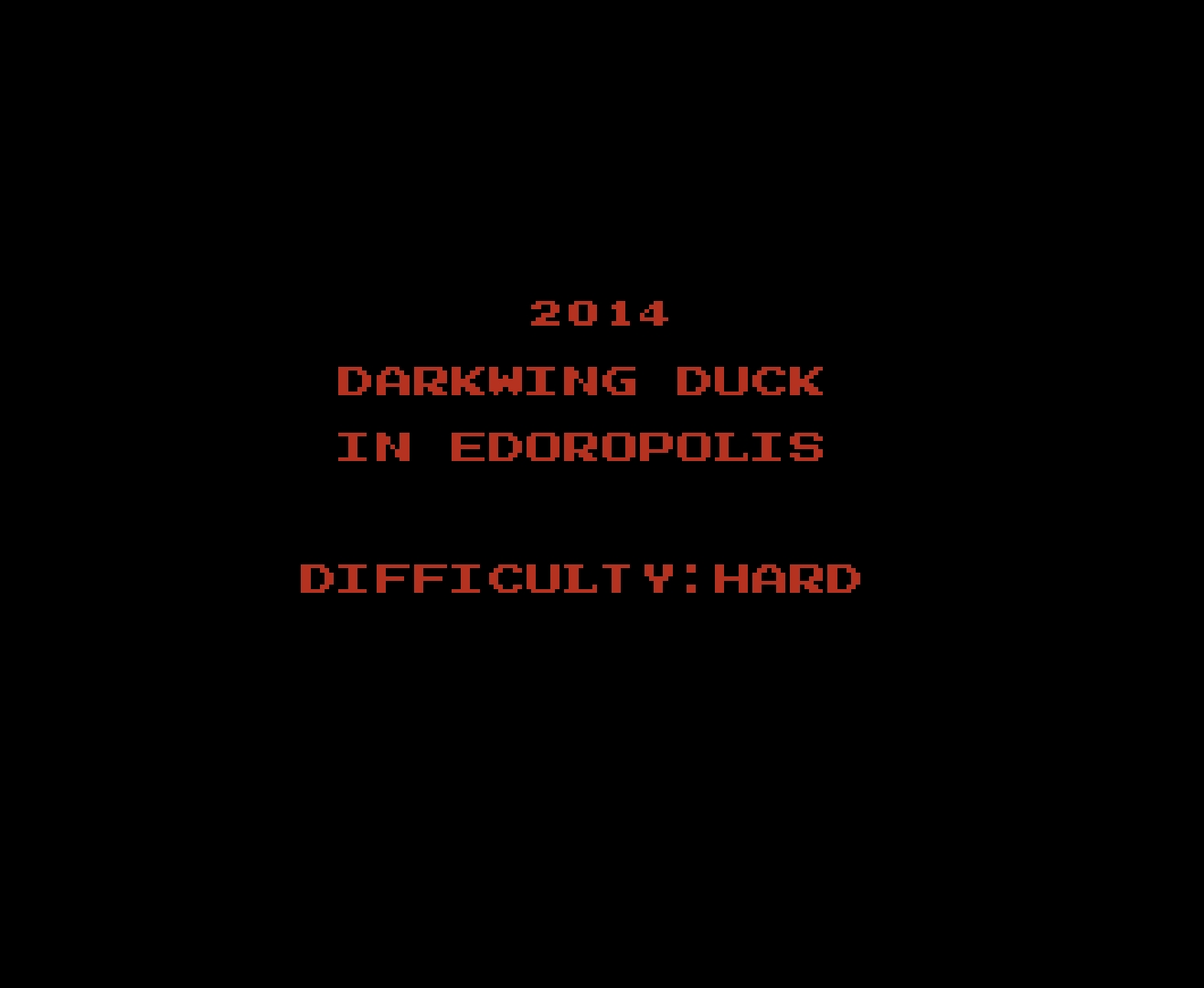 Darkwing Duck in Edoropolis is a rom hack of Darkwing Duck developed by Lomax / Emsi D in 2014 for the NES. In this hack Darkwing Duck visits a different video game known as "Samurai Pizza Cats," (a.k.a Kyatto Ninden Teyandee) where he will traverse new levels in a city known as Edoropolis. In addition to the 7 levels of Samurai Pizza Cats (recreated as accurately as possible), this hack changes almost all music in the game, includes a new weapon which after obtained can be switched with the Select button, new cut-scenes, and new and tougher bosses.