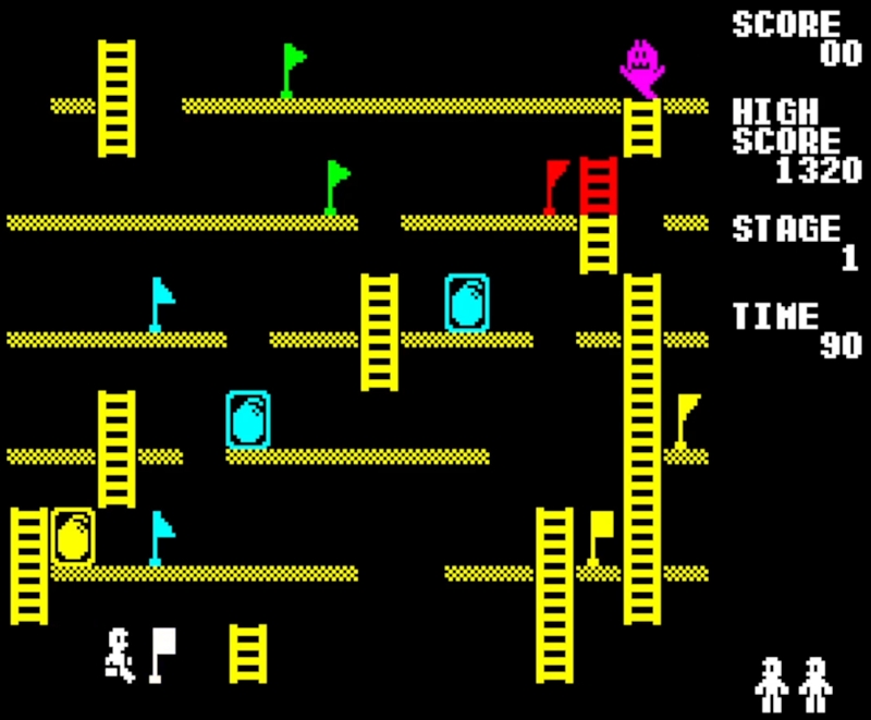 Collect all the flags and avoid the ghosts to progress to the next level. You can scroll the platforms left and right to make access easier.