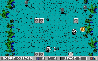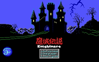 This Knightmare is the recompiled DOS version of the Konami game of the same name that was first released in 1986 on the MSX platform and followed by 2 other games in the series. The plot is based loosely on Greek mythology. You are valiant knight Popolon, on his way to rescue Aphrodite, the queen of the castle who was captured by the evil Hudnos. All in a day's work, as usual. Knightmare is basically a top-down shooter game that is disappointingly much easier than the MSX original. Basically enemies (balls, knights, etc.) come from the top of the screen, and you shoot them with knives or whatever power-ups you collect throughout the game. For its time, there is a surprisingly large number of power-ups to collect-ranging from weapon upgrades (swords, double knives, etc.) to items such as invisibility and shield.