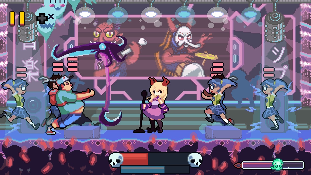 In Kawaii Deathu Desu, supernatural beings find themselves incarnated as cute japanese idols! Pick a supernatural idol and beat the hell out of - no pun intended - as many overzealous fans as you can in this addictive beat'em up as you work your way up to claim the throne of the underworld!