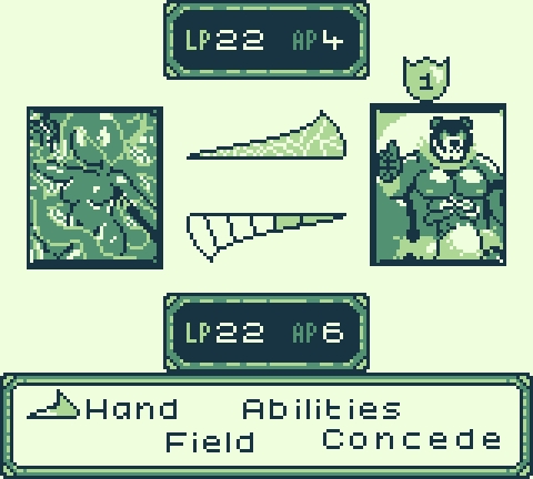 A fast-paced card-battle game played on arcade cabinets is a new, local fav in your college town, and the community even has a spot in the city mall to play in! Let's go, CyDream! "You know it's fictional because there would never be this many out queer people at a game store in the early 2000s." It's some time in the early 2000s, and Cyber Dreamscape Battle-Deckers 2199 is a digital-only card game that's developed a vibrant and loyal community thanks to its freedom of character expression and the giant game cabinets it's played on. Even in your small US college town, there are players who meet and trade matches at the nearby city mall. For better or worse, the game shop in the mall is the only location close by with an officially-sanctioned CDBD battle arena setup. This has let all kinds of hyper-local tournaments and events pop up at the game shop, with all kinds of players showing up to participate. Unfortunately, it's not all fun and games when not everyone in the community gets along or plays fair- even in a game where you can spectate a brawl between a slime-girl made of bubblegum and a wrestler in a teddy bear mask..! ~~~~~~~~~~~~~~~~~~~~~~~~~~~~~~~~~~~~~~~~~~~~~~~ Cyber Dreamscape Battle-Deckers 2199 is a card-battle game made for the Game Boy, inspired by shonen card-battle anime and manga of the '90s and early 2000s. It features snappy, puzzle-like card-play using an accessible card combo system built around simple, menu-based interactions. Each of 3 playable characters have their own custom deck, complete with signature cards and varying ratios of attack "staples". They each have their own unique special abilities as well! Taking roughly 15-20 minutes to complete a single tournament story run (told through dialog interactions at a local tournament event being held at the mall game store), simply choose your character and play out their tournament day! Or you can choose a fighter and start a quick single match against any of the game's opponents! There's no wrong way to CyDream~