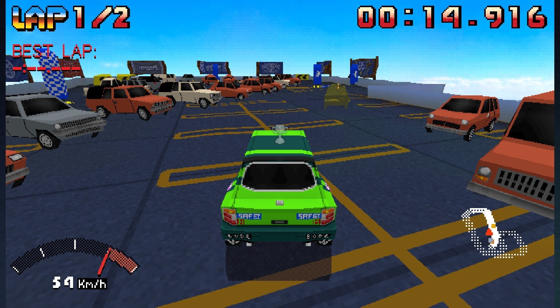 Retro Arcade-style Rally Racing in repurposed Parking Garages in big cities across the USA You said "Parking Garage"? The “Parking Garage Rally Circuit” tour comes into a city, selects a parking garage, and temporarily turns it into an exciting rally course for a week-long competition. Each track in the game is styled as a unique parking garage that has been turned into a race course. Rally... Circuit?!? This is a hybrid of Rally and circuit racing. From rally it draws the jumps and “one racer at a time against the clock” time-trial format. However, the tracks are similar to circuit racing, with each race consisting of multiple laps around the same track (the track may change slightly from lap to lap, however) Controls are very tight, simple and arcadey, similar to Mario Kart (accelerate, reverse, steer, drift), but with a bit more dynamic “smash into things” physics. Seamless Leaderboards After beating the gold trophy for a course, ghosts from other players just barely ahead of you on the leaderboard are automatically downloaded to race against, getting you into that "just one more" flow as you chase down rivals. Limiting the auto-download rivals to Steam friends only is also an option. Realtime Multiplayer Create or join a lobby of up to 8 players for realtime peer-to-peer non-contact racing! Split-screen Multiplayer Connect some controllers and relive the glory days of split-screen multiplayer for 2-4 players with contact and non-contact options. Retro Style Designed to look and feel like a long lost Sega Saturn game that could have been released in ~1998. This includes low-resolution, low-poly, chunky textures of course, but also extends to the audio, simple interface, and streamlined game scope. Oh, and CHEAT CODES too!