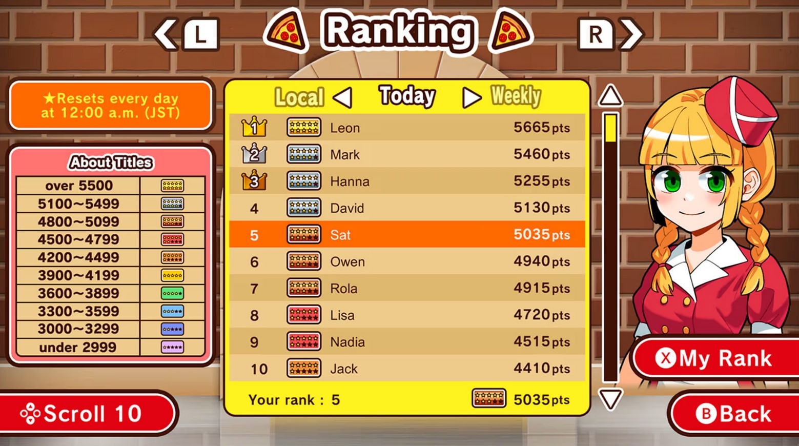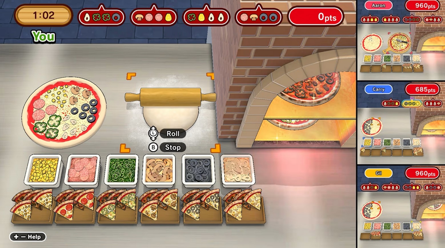 Roll the dough and add toppings to order! Serve your customers delicious, fresh-baked pizza! Let's make pizza on the Nintendo Switch™! Make lots of slices and fill orders one after another! Keep your slice stock full and serve orders, but don't let anything burn! Share Joy-Con™, and up to 4 players can join in the fun! Bake masterfully and aim for the ultimate high score! 《Rules》 Make pizzas to order and serve them to your customers! To earn the most points, prepare perfect pizzas and don't let them burn! Bake as many pizzas as you can within the time limit! 《How to Play》 1. Place pizza dough on the counter! 2. Roll out the dough and add toppings! 3. Bake the pizza in the oven! 4. When the pizza is done, cut it and stock the slices! 5. Pick 4 slices to box, then serve them to the customer! [Score Attack] Earn a high spot on the global leaderboards! Make pizzas quickly and accurately, fulfill more and more orders, and aim for a new record! [Battle] Compete with up to 4 players! Be faster and more precise than your opponents to win!