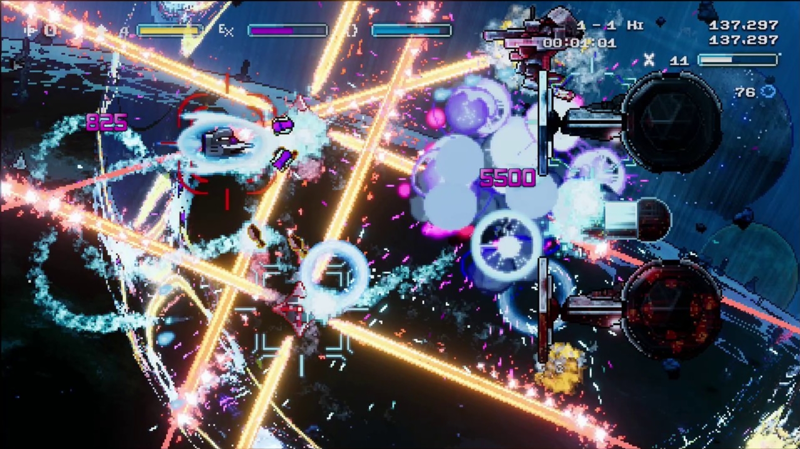 Become humanity’s shield by turning enemy invaders’ firepower back against them in frenetic shoot’em up style! Outnumbered and outgunned in deep space? No problem! Turn your enemies' attacks into pure bullet heaven with your advanced Schildmaid technology and start collecting dangerous projectiles to power up your ship and score big! But when your shield runs out and danger time kicks in, you’d better switch up your strategy fast! Schildmaid MX is a fresh and frenetic side-scrolling 2D shoot 'em up in which you pick 1 of 3 ferocious fighter spacecraft to wreak havoc on the invasion fleet that threatens your planet. Embark on multiple attack runs and strike fear into the hearts of your enemy. The best pilots are immortalized on the online leaderboards! Features: • Blast off for intense side-scrolling shoot’em up action! • Utilize specialized shield tech to absorb enemy attacks and charge your weapons. • Choose from 3 unique ships to match your preferred play style! • Master risk-vs-reward gameplay mechanics with quick-thinking strategy. • Test your skills against online leaderboards!