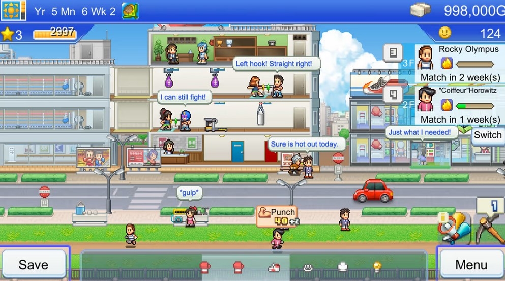Create your own gym, train boxers, and aim for the championship! Introducing a sim with real punch! Are you the manager this down-on-its-luck boxing gym needs to get back on its feet? Get the town excited about boxing, and more people will start signing up. Stand by the ringside to cheer on your boxers. You never know how a match will go until the very end! And don't forget about marketing - fans are the lifeblood of competitive sports! Rack up more wins, and you'll be able to upgrade your facilities with spa baths, high-class cafeterias, and more. Before you know it, athletes will be lining up to join you! Hire trainers and hone your boxers' skills until they're ready to take on the world! Make your gym unique by outfitting it with facilities of your choice, creating the perfect environment for fostering boxing talent. Don't give up until you get that championship belt! Enjoy all the thrills of an underdog boxing story in Kairosoft's latest management sim game! Try searching for "Kairosoft" to see all of our games!!