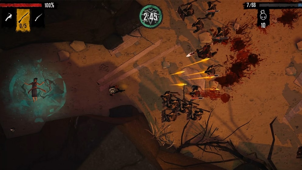 A violent, horde mode, top-down fast-paced action game set in an alternate Wild West, an absurd, acid-fueled vision of hellish frontier. ▪ “There’ll be plenty of challenges to face along the way and it’ll certainly test your skills, but twin-stick shooting fans won’t want to miss out on Ritual: Crown of Horns.” - Use a potion, review score: 82%. ▪ “Ritual: Crown of Horns is a challenging yet hugely rewarding western-horror themed action game which will go down well with veterans of the ‘horde’ genre.” - Nintendo Life, review score: 72%. ▪ “Ritual is metal as hell, but it’s doing it with carefully directed shots, not just generic excess.” - Rock Paper Shotgun. Ritual: Crown of Horns is a slaughterhouse: a fast-paced action game set in an alternate Wild West, a demonic version of a hellish frontier. This arcade-inspired title unravels a tale about an unlikely duo: a bounty hunter who comes back from beyond the grave, yearning to exact revenge on his killers and a witch who aids him with a series of powerful rituals to further her own agenda. Push back hordes of enemies, while the witch performs her ritual. Use a whole arsenal to your advantage: mindfully swapping between weapons and spells. Unlock new tools and powerful items boosting your character. Travel throughout the Weird West picking your missions and planning future unlocks to finally exact your revenge! Ritual: Crown of Horns is a skill based game, where split-second decisions and planning on the go are more powerful than button mashing and throwing yourself mindlessly at enemies. GAME FEATURES: ▪ A unique auto-aiming system that distinctly sets itself apart from your average twin-stick shooters: instead of spraying and praying, you are an elite gunslinger who makes every shot count. ▪ A satisfying arsenal: shotguns, six-shooters, rifles, crossbows, and a few surprises that are a little less era-appropriate. Outrageous enemies: brainwashed cultists, supernatural legendary creatures, bizarre murderous contraptions – you name it. ▪ Gear: mysterious capes, hoods and amulets that you can customize and get powerful buffs for your character. ▪ Creative spells and power-ups that can violently alter the way you approach each combat encounter. ▪ Plenty of insane levels for you to master, each complete with unique challenges tailored to push the combat system to its limits. ▪ A unique gothic-horror-meets-weird-western artstyle.