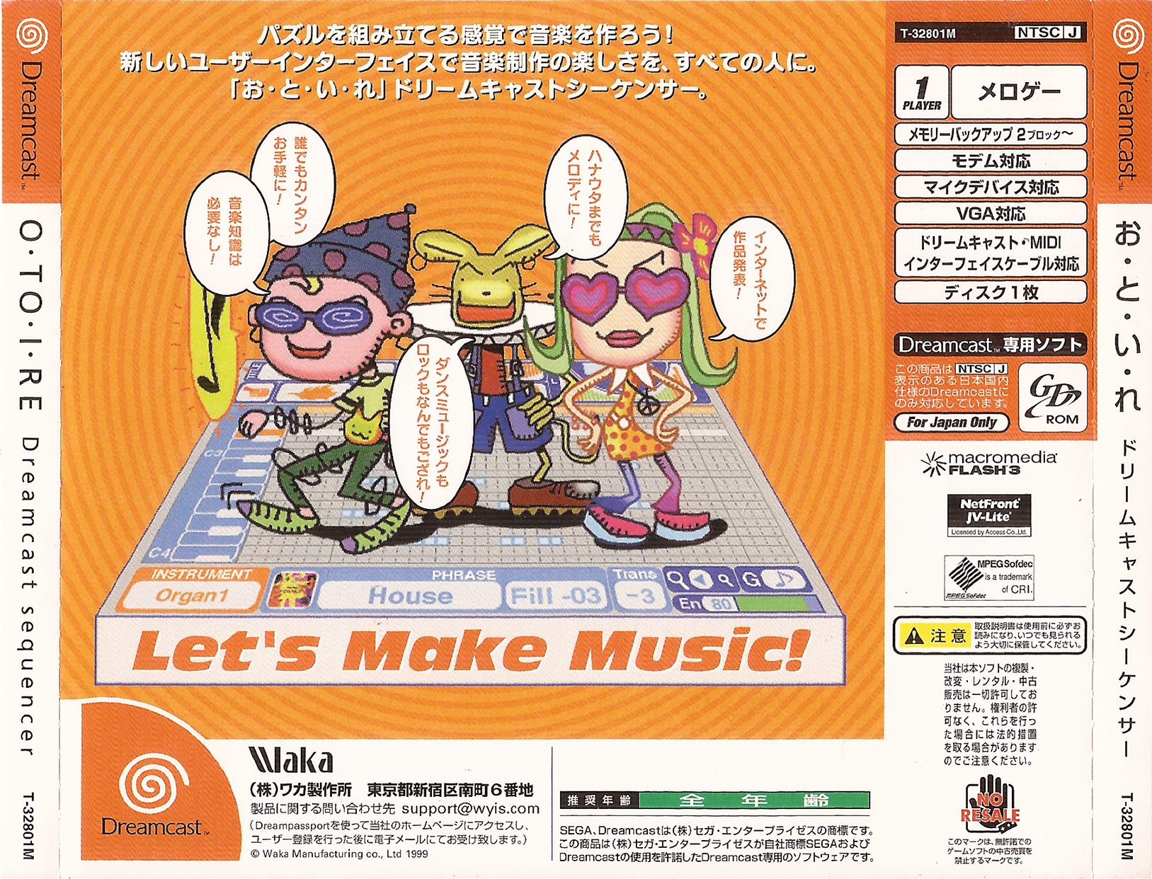 O.to.i.Re: Dreamcast Sequencer (お・と・い・れ ドリームキャストシーケンサー) is a Japan-exclusive Sega Dreamcast music creation tool by Waka Manufacturing. It was released only in Japan, and allows the player/user to produce his or her own music tracks via the Dreamcast Controller, Dreamcast Microphone, or Dreamcast MIDI Interface Cable. Additionally, this was the only piece of software released in the Dreamcast's lifespan that supported its MIDI adapter cable.