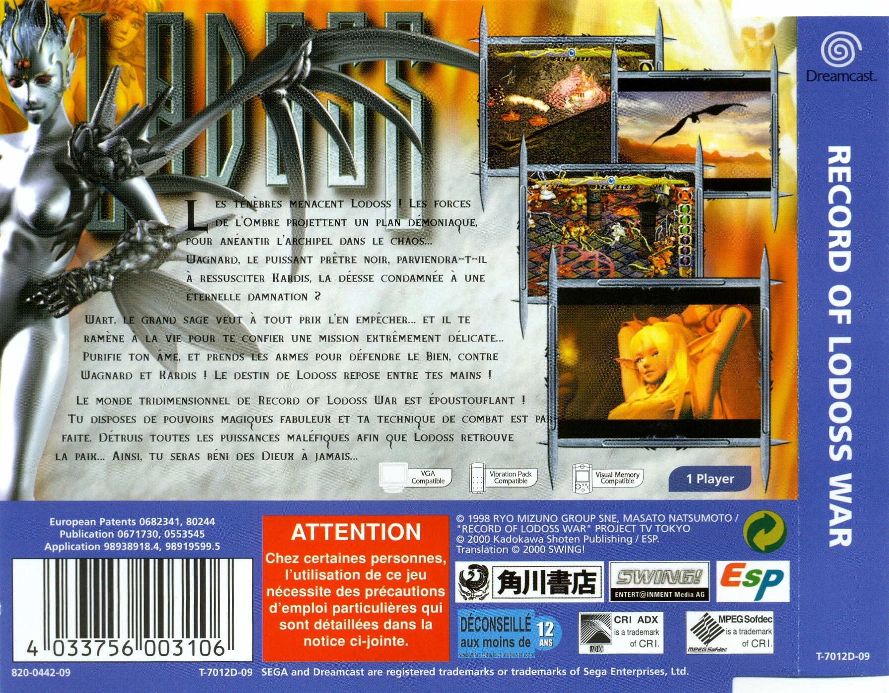 Record of Lodoss War, known in Japan as Record of Lodoss War: The Advent of Cardice and Lodoss Shima Senki: Jashin Kourin (ロードス島戦記 邪神降臨), is a 2000 action RPG by Neverland for the Sega Dreamcast in the Record of Lodoss War series.
