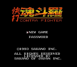 Contra Fighter is an unlicensed ROM hack of the NES game, G.I Joe: A Real American Hero. The publisher is Sakano. The original character sprites have been replaced by sprites that look similar to characters from Street Fighter, even though the play style is similar to that of Contra’s.