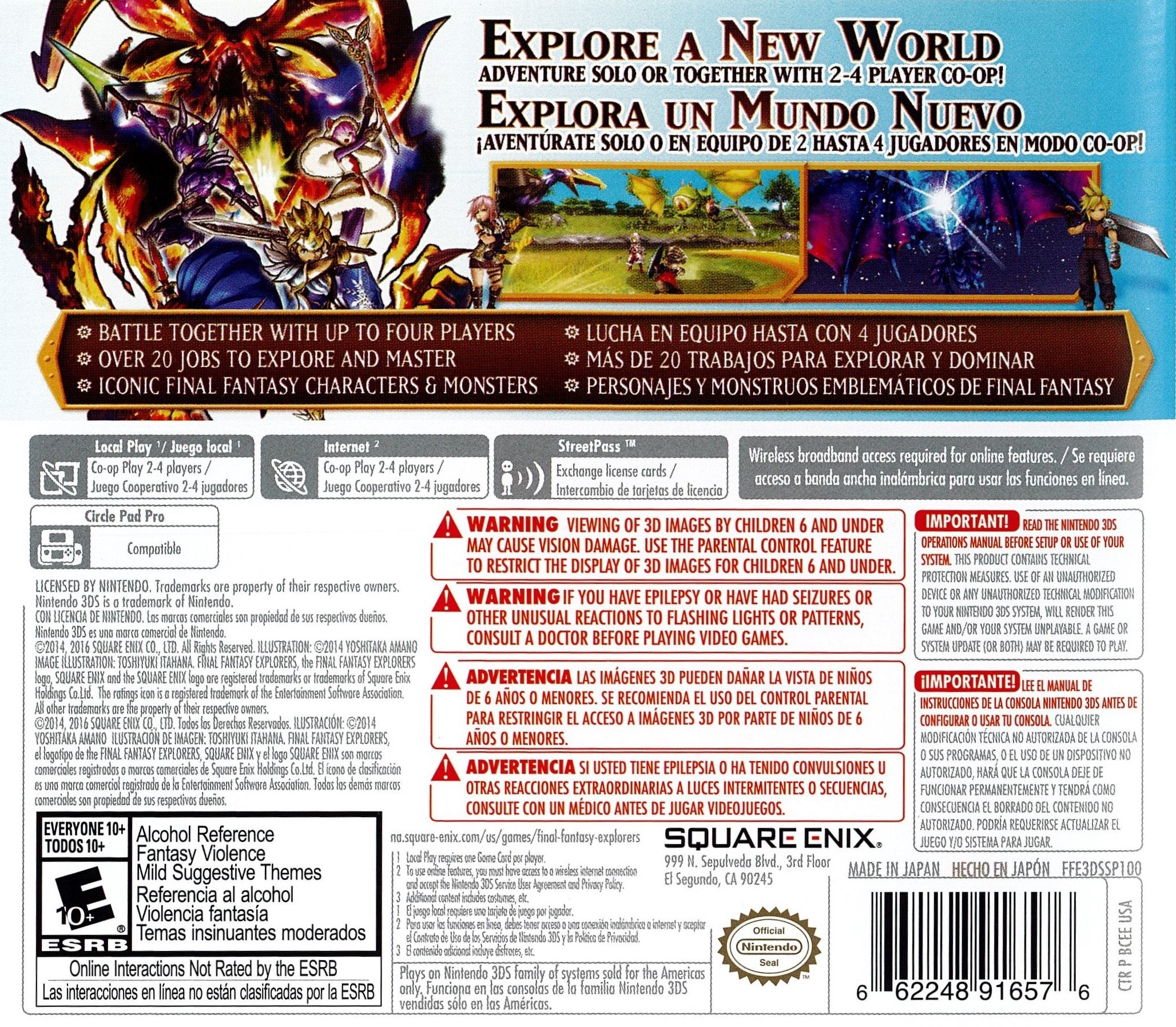 Final Fantasy Explorers focuses on cooperative play with friends, utilizing a refined party system allowing Explorers to master over twenty jobs, each offering unique ways to defeat or even recruit the realm’s mightiest monsters. Players have the ability to call upon the powers of eidolons like Ifrit and Bahamut, as well as to transform into legendary characters from the Final Fantasy series via the Trance ability. Multiplayer functionality is enabled through the Nintendo 3DS wireless communication.