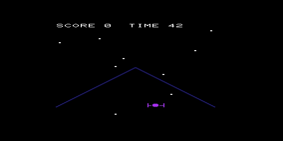 Star Wars is an arcade game for the VIC-20. The player attempts to shoot a TIE fighter by maneuvering the enemy vessel to the center of the screen where it can be blasted with lasers. The player has 60 seconds to destroy as many enemy vessels as possible.