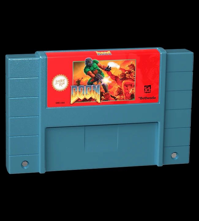 The new. The improved. The DEFINITIVE DOOM SNES experience! All 4 DOOM episodes, including Thy Flesh Consumed, added circle-strafe, Performance improvements, Monster respawning on Nightmare difficulty, Level codes, and Rumble support via an all-new controller! Welcome to Doom, soldier. Now shut up and start fighting because there's no time to waste! We're talking total war against the forces of evil, with the only thing standing between civilization and the end of everything as we know it is you - one angry Marine with a handgun and a bad attitude. This is the full-auto, 16-meg faithful version of the PC original. Which means all the same monsters, levels, weapons, and surprises are around for a screaming fast descent into danger with sudden death lurking around every corner. Strap on your ammo and prepare to spit lead. Because now's your chance to be a hero