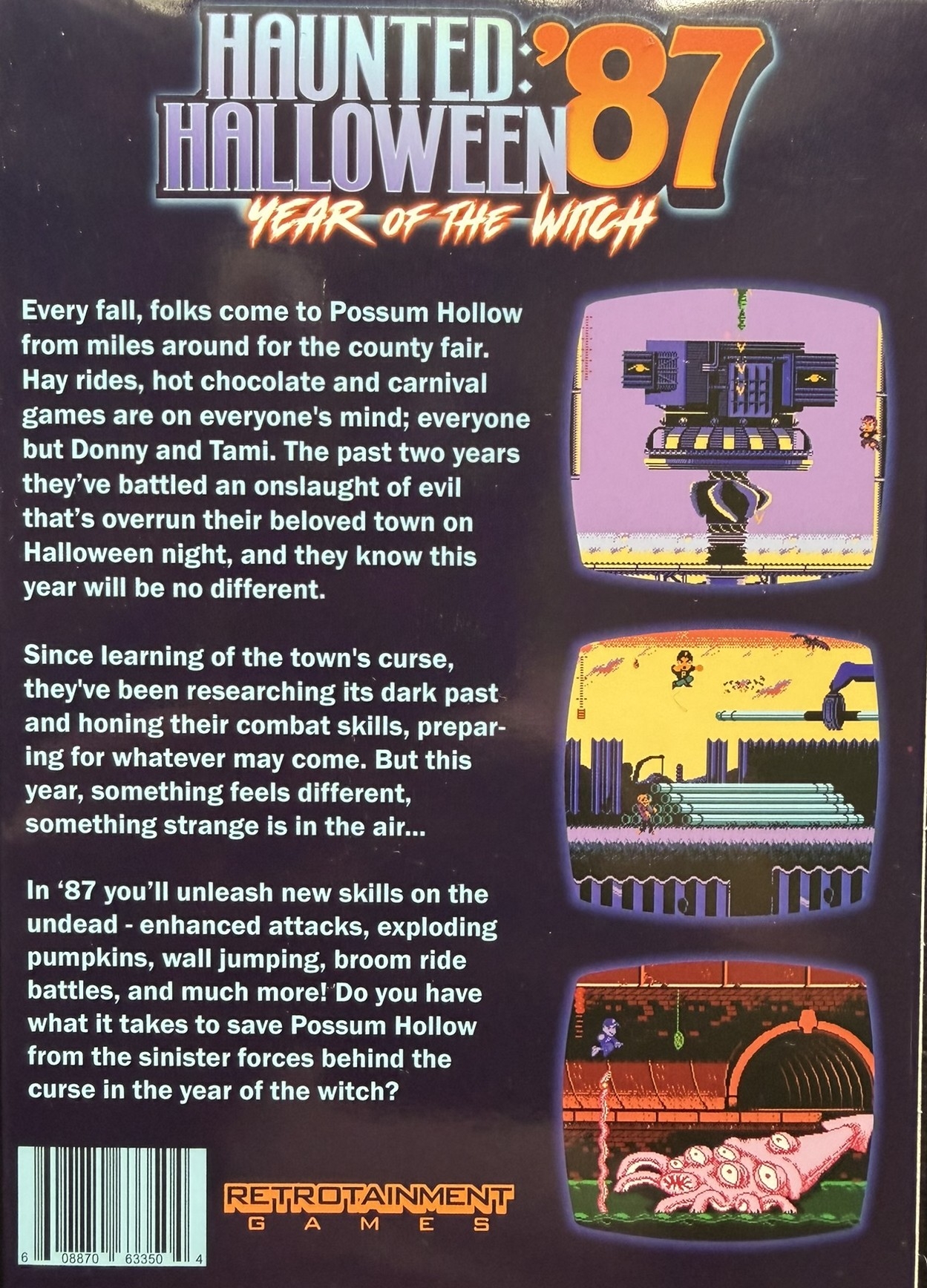 '87 includes all the high-flying combat from the previous games but takes it to 11! You can now enhance your power moves with spells and potions to give them even more of a wallop. You'll acquire these over 9 action-packed levels taking place in various parts of Possum Hollow that lead to the final showdown with Harry and the witch. This game also features broom rides that let you soar through the skies over Possum Hollow. Do you have what it takes to save the town on Halloween night?!?