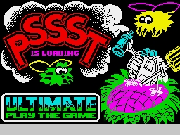 Pssst is a single screen game. The plant grows from a plant pot at the bottom centre of the screen, and the spray cans containing three different pesticides are located on ledges on each side of the screen. Bonus items such as fertilizer and spades appear on unoccupied ledges which will increase both the players score and the plants growth rate, however as the alien insects also appear from the ledges, and bonus items can only be collected if Robbie is not holding a can of pesticide, it is a risk to collect them. There are three types of alien insect, and three types of pesticide which will either kill, stun, or have no effect on the insects. Robbie can only carry one type of pesticide at a time, and in the early stages of the game the kill pesticide can be carried at all times, however later stages have more than one type of insect on screen at once, making the choice of pesticide more tactical. As the plant grows it will sprout leaves which increase the growth rate, yet also make it more vulnerable to the insects. Once the plant reaches a predetermined height, it flowers and the player moves to the next level. When the insects make contact with the plant they will stick to it, making it shrink until it dies. If the plant shrinks beyond the section where the insect is attached, the insect is released, but it may immediately reattach lower down, depending on its movement path. A life is lost if the plant dies or if Robbie makes contact with an insect. The death graphic for both Robbie and the insects is the same as the enemy explosion used in Jetpac.