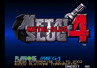 Metal Slug 4 is a 2002 arcade video game developed by BrezzaSoft, Mega Enterprise, Noise Factory, and Playmore and released by Apple Industries in the USA on March 27, 2002. Metal Slug 4 is the fourth game in the Metal Slug series. One year after the events of Metal Slug 3, the world is trembling under the new threat of a mysterious but deadly cyber virus that threatens to attack and destroy any nation's military computer system. With Tarma and Eri unable to help due to their own assignments in the matter, Marco and Fio are called in to investigate the situation and are joined by two newcomers, Nadia and Trevor. In their investigation, the group discovers that a terrorist organization known as Amadeus is behind the nefarious plot and that they head into battle against Amadeus' forces, hoping to destroy the cyber virus before it gets the chance to wipe out the entire world's military computer system