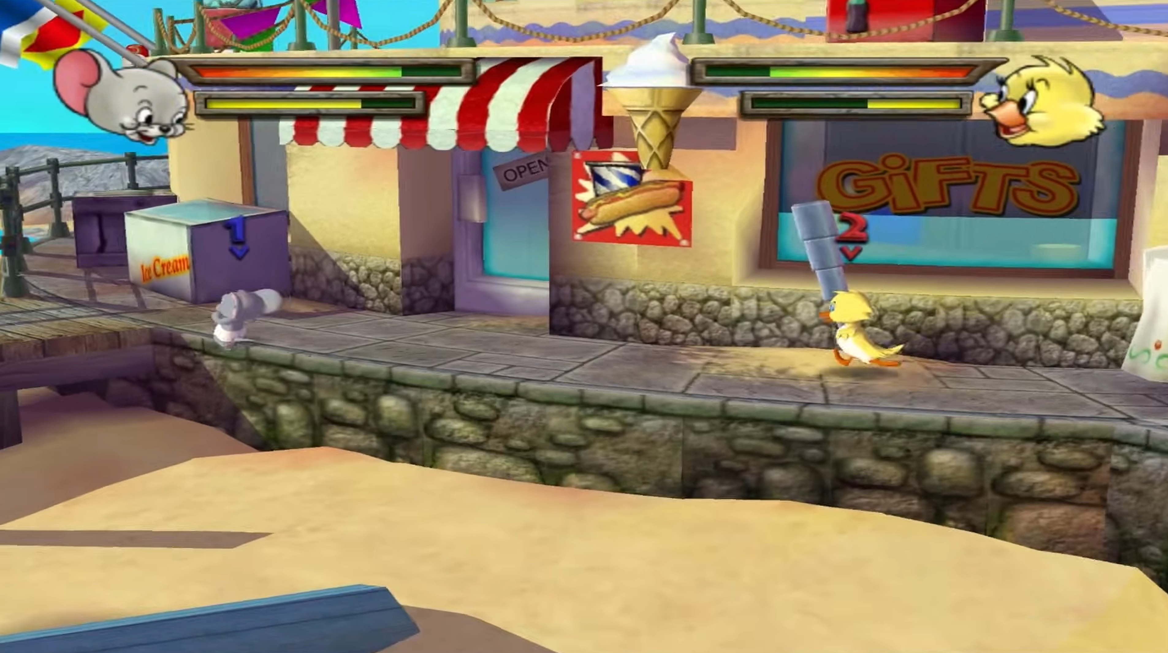 Are you ready to kick some butt with Tom and Jerry and friends? With your choice over 75 weapons, you can duke it out in unique levels such as Frankenmouse, a twisted laboratory, or Towering Infurno, an unstable construction site! Be Prepared for the ultimate game of "Cat and Mouse"!