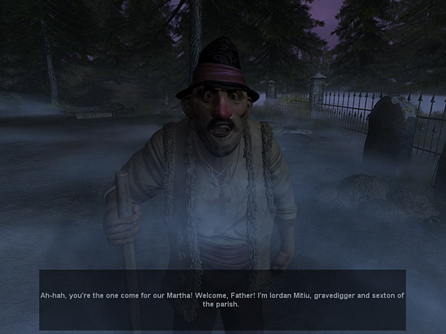 The game is played from a first-person perspective with the direction in which the player is facing controlled by the mouse. On each static screen, the player is free to look around 360o. The game's interface is very simple; there is no HUD, instead the player has access to an inventory in which all items are stored. From the inventory, the player can also access objectives, review dialogue and examine any documents they have acquired.[9] To speak to people or interact with objects, the player must click on them with the pointer. As the player moves the pointer around the screen it can change to an arrow (meaning the player can move in that direction), a magnifying glass (meaning the player can inspect something in more detail), a cog with a red line through it (meaning the player must use an item on the object), a cog without a red line (meaning the player can operate the object without using an item) or a hand (meaning the player can pick the item up). When the player clicks on a person to whom they wish to speak, a list of conversation topics appear on screen. When the player picks up an item, it is automatically put into an auto-holder rather than the main inventory, and must be transferred manually from the auto-holder to the inventory screen. This allows the player to sort the inventory in any way they wish.