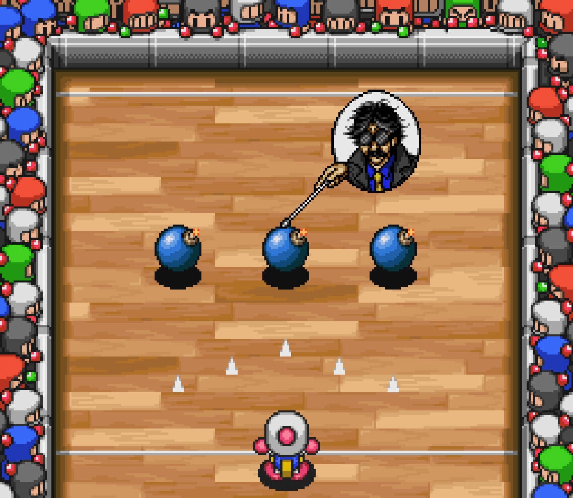 Bomberman B-Daman is a video game for the Super Nintendo that was released only in Japan. It is part of the Bomberman B-Daman series. This game features puzzles that must be solved by shooting marbles. Bomberman can hold a marble in his stomach and can only fire one shot during the round. The player must angle it and time it correctly to detonate all of the bombs on screen. There are 10 levels and each have 10 stages. Before each round, a preview will display the stage to show the player what to expect. If the player fails a stage twice then they will advance to the next stage. There are also modes to let the player edit the colors of the Bomber characters and even create their own stage...
