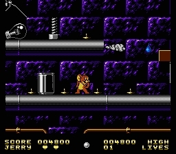 Tom has mouse-napped Jerry's nephew Tuffy and locked him in a trunk in the attic. You and your furry little buddy Jerry must dash, jump, and climb from the basement up through every level of the house to rescue him in time. Jerry's main defense is his unlimited supply of marbles. Pick up other items such as bubble gum, meat cleaver, cups of water, moth balls, hammer, invisible ink and drill to overcome the enemies and obstacles in your way. Make sure you outwit Tom whenever he appears.