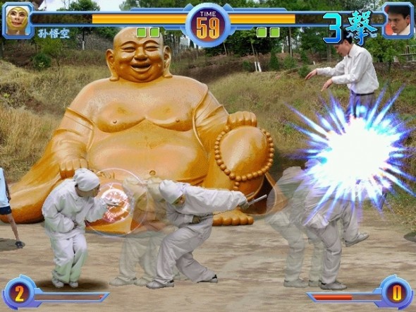Dong Dong Never Die is a 2D fighting game featuring the most rare fighters we have ever seen. We can find a lolita, a Chinese with Afro hair, a prayer and even Super Mario. Each character features different styles and own kicks, punches and special movements. This means that if you choose Super Mario you can throw mushrooms, but when using other characters you can use an umbrella, enlarge arms or any other crazy movement. Settings are also special, always in movement and we can fight in the scenario of Super Mario or Streets of Rage taken directly from the original ones. Dong Dong Never Die is as rare as funny, so we recommend it. Don't worry about Chinese language, just press enter and continue.