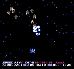 Conceived as an entry for a game development competition, this game would later be published by Naxat Soft in 1992. This frenetic shoot-'em-up taxes the Famicom system and the player's reflexes with huge quantities of enemies while maintaining smooth, fast gameplay! In addition to a single player campaign, there are also score attack and time attack modes available.